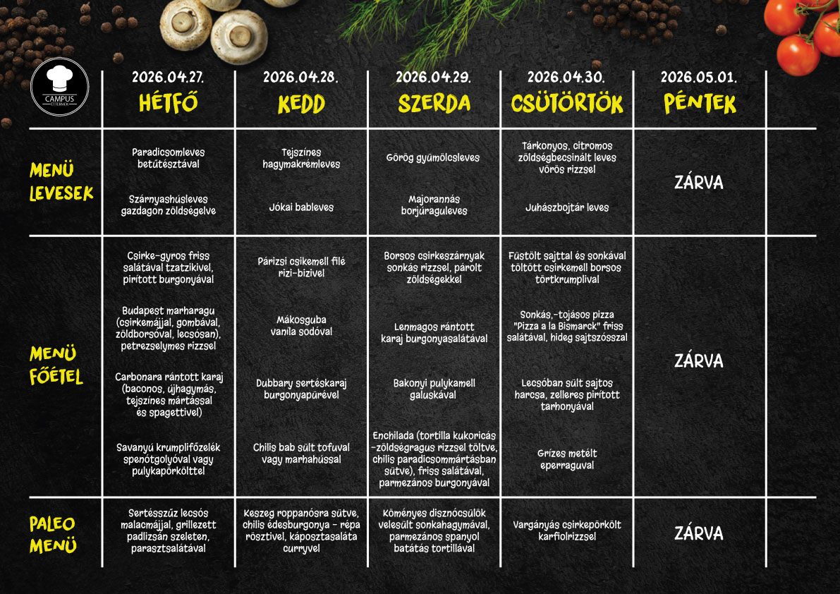 Egységünk immár a Campus Éttermek hálózat tagja, így szolgáltatásainkat is innen érheti el.